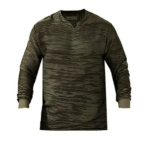تیشرت آستین بلند یقه کوبایی سبز تیره مدل Nivad